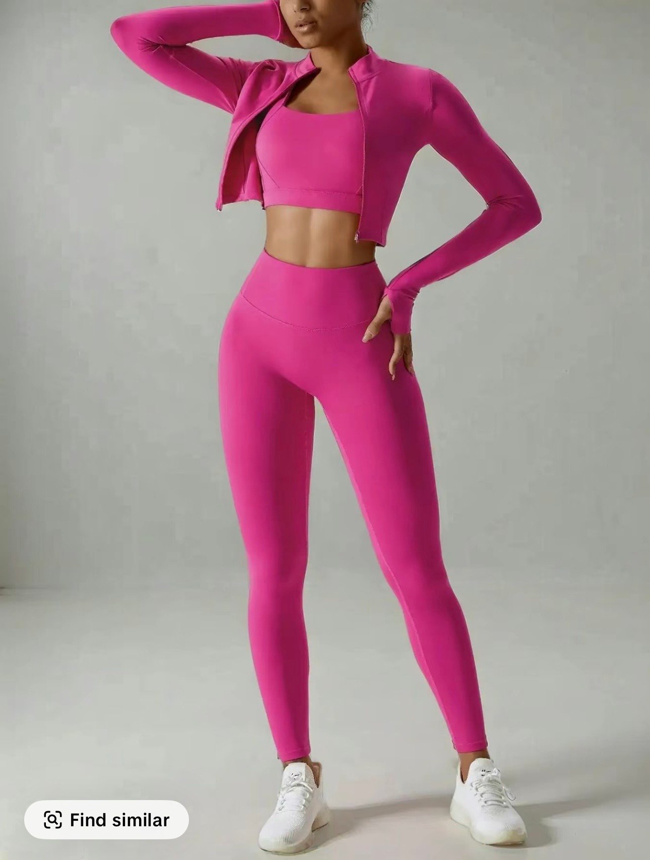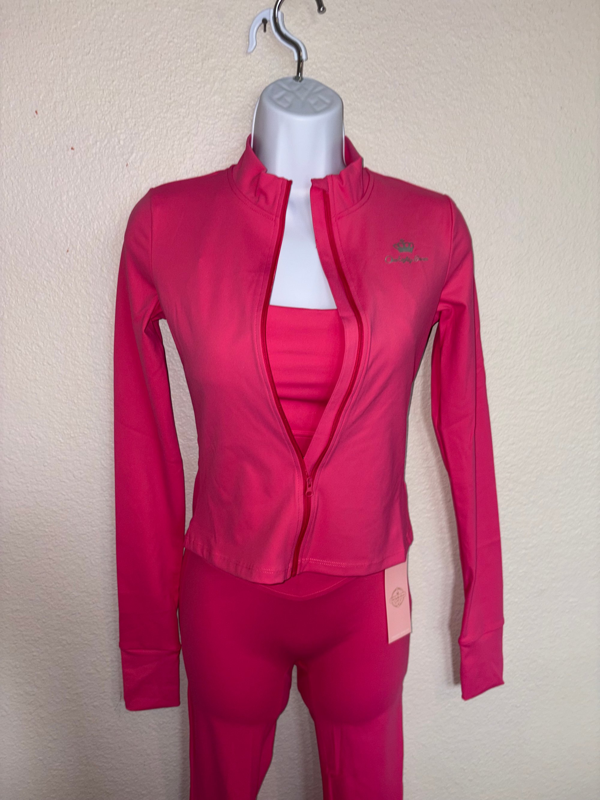 Sexy form fitting athletic set, bold pink color, girly clean baddie aesthetic